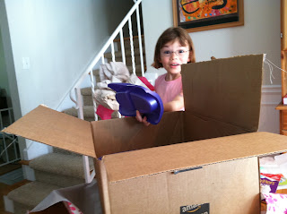 A few months before Kiddo's ninth birthday, Hubby and I decided that we were going to give her what she would consider the Best Birthday Present EVER: a kitten of her very own. Kiddo had been having a pretty rough year in school, and while finances haven't been the greatest (are they really that great for anyone these days?), we decided adding one more cat to the household wouldn't be a strain after the initial adoption fees and vet fees. We bought a litter box, some dishes and some new cat toys and wrapped them up for her in a box. Following her first ever slumber party, which ended the morning of her actual birthday, we gave Kiddo the box to open.