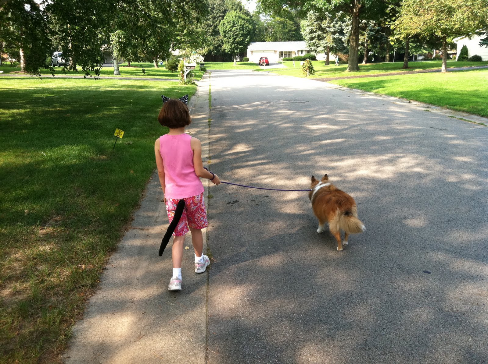 At first, she thought these were just props she could use in playing kitty. (She has several pairs of cat ears and tails and quite frequently pretends she is a cat. I have even run errands with my kiddo-kitty. Yes, one does get some strange looks when one is accompanied to the store by a child wearing cat ears and a tail.) When we told her "well, you could use those to play kitty, or we could take you to the animal shelter right now and you could pick out a kitten" she went speechless. I didn't think humans' eyes could actually get so large - it was like a cartoon come to life.